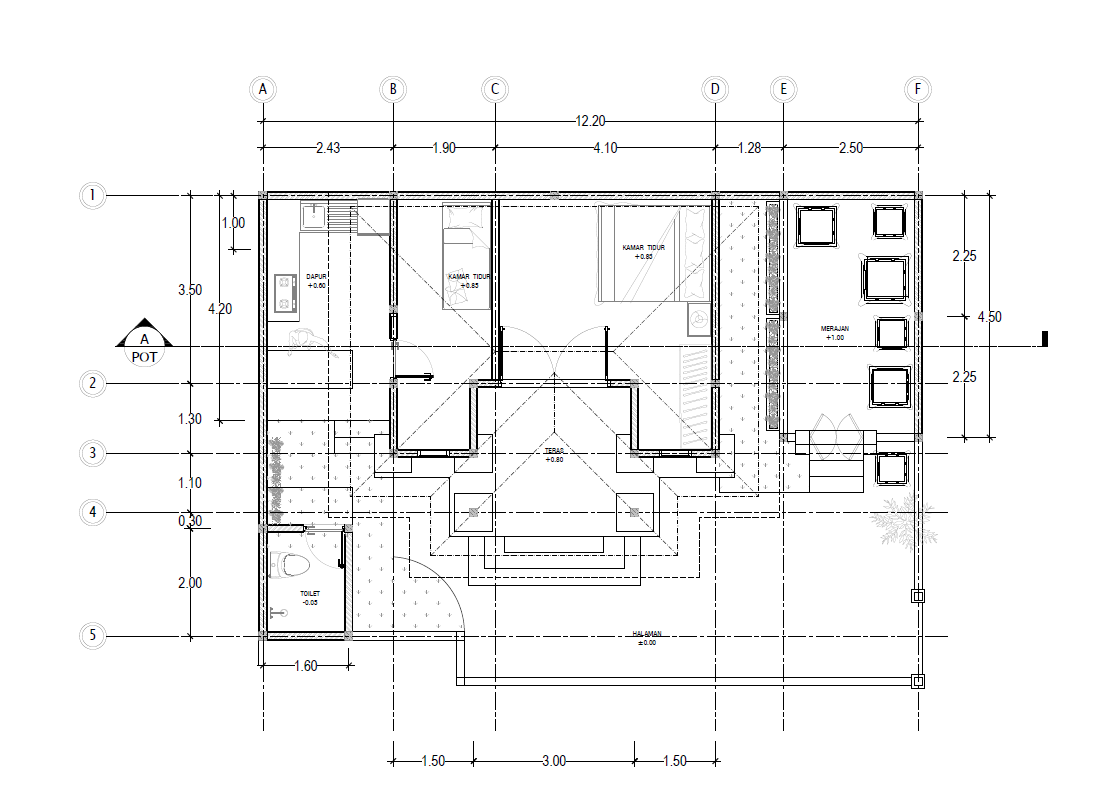 Keberadaan merajan dirancang khusus dengan elevasi dan posisi yang sesuai, menunjukkan perhatian terhadap aspek spiritual dan budaya, yang menjadi nilai penting bagi hunian di Bali.