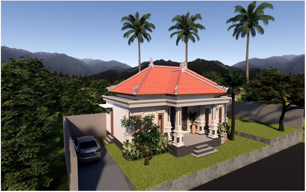 Elemen arsitektur Bali seperti bentuk atap, murda, proporsi bangunan, serta penggunaan material alami dipadukan dengan garis desain modern yang sederhana. Hasilnya adalah rumah yang berkarakter, tidak ketinggalan zaman, dan tetap relevan secara estetika.